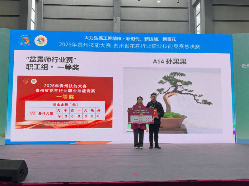 近年来,贵州花卉产业发展势头强劲,截至2024年,全省花卉苗木种植面积达35105公顷,生产切花7405万枝,盆栽盆景植物2982万盆,观赏苗木19472万株,销售额达20.78亿元,同比增长4.3%。本次竞赛的成功举办,不仅激发了全行业学知识、练技能、强本领的热潮,更通过搭建技能比拼与交流平台,营造了尊重技能、崇尚创新的良好氛围,为贵州花卉产业持续繁荣储备了人才动力,实现了“以赛促学强本领、以赛提质优产业、以赛兴产助发展”的办赛目标。未来,贵州将继续以职业技能竞赛为抓手,推动花卉产业转型升级,助力乡村振兴与生态文明建设。